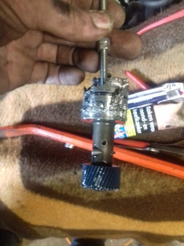 Na het knappen van 2 staaldraadjes, de boel maar uitgeboord, vast totdat de buitenrand afbrak  :(