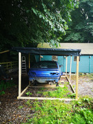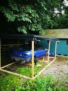 Well haven't done much in the last while apart from sourcing bit and pieces. Finished the temporary frame and plastic sheet roof to keep the rain, bird poo and bits that fall off the tree of the NX